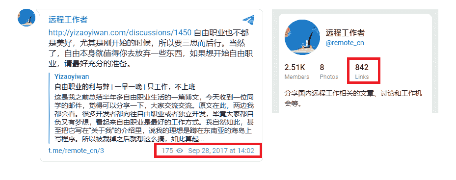 但事实上,一旦你开始尝试,你会发现,这条路其实也没那么难走,近年来越来越多的公司开始支持远程办公了,拿我在维护 Telegram Channel 举例,从17年10月到现在,我分享过远程工作机会已经八百多条了。