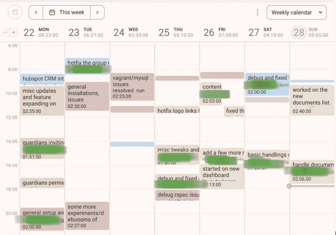 ▲ 2021年3月某一周的工作记录